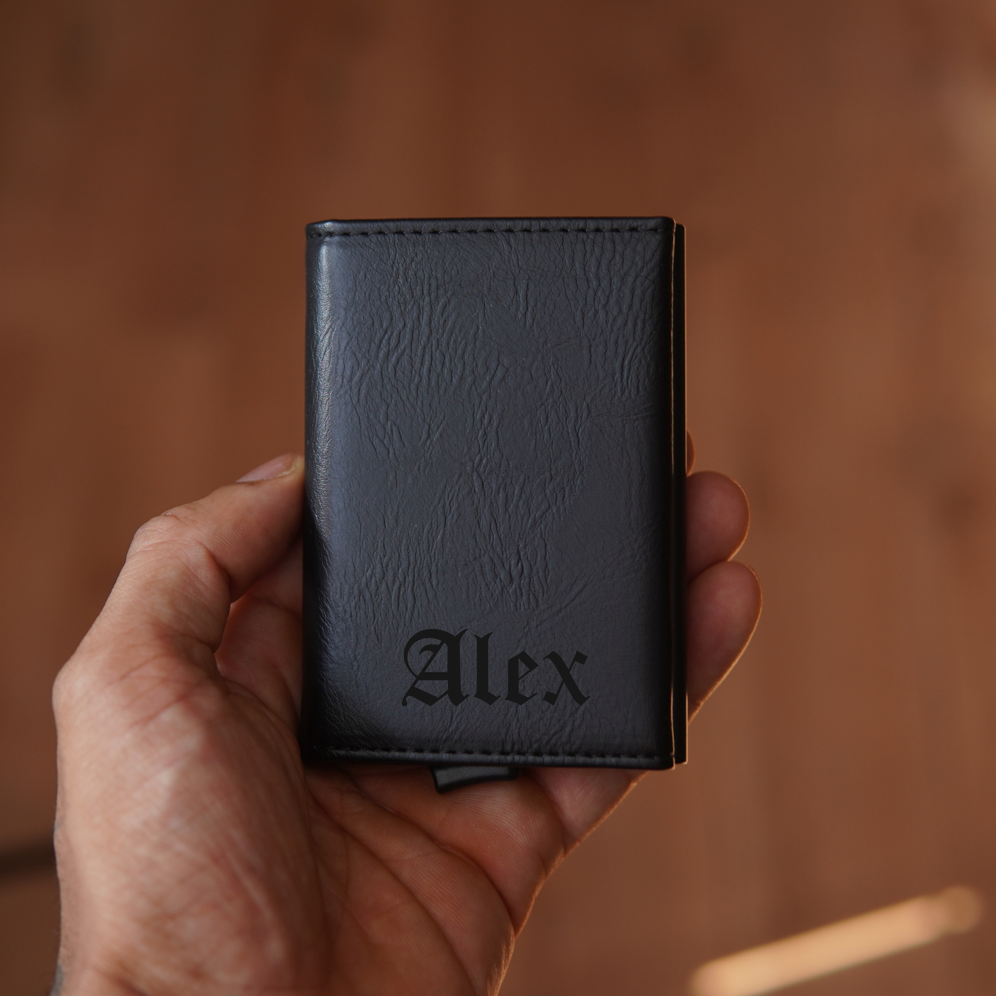 Portefeuille homme personnalisé en cuir végétal – Élégance et praticité réunies dans un seul accessoire. Ce portefeuille pour hommes en cuir au design pop-up innovant allie style moderne et fonctionnalité, tout en respectant l’environnement grâce à sa fabrication en cuir végétal de haute qualité.